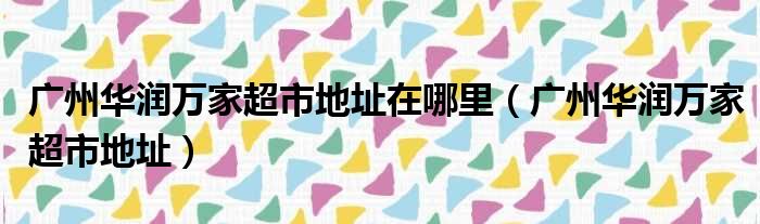 广州华润万家超市地址在哪里(广州华润万家超市地址)