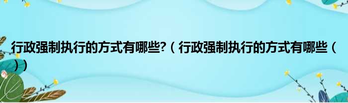 导读 大家好,今天小六子来为大家解答以下的问题,关于行政强制执行的方式有哪些?,行政强制执行的方式有哪些 ( )这个很多人还不知道,现在让我