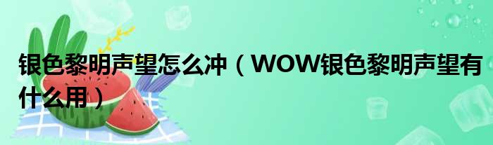 银色黎明声望怎么冲(WOW银色黎明声望有什么用)