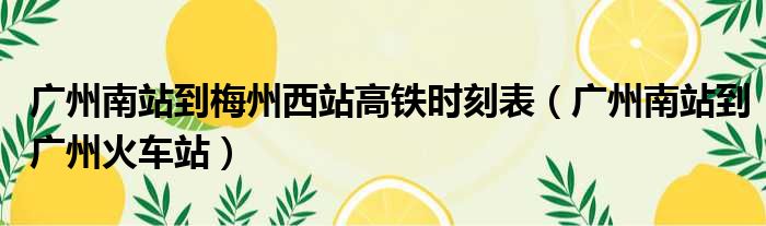 广州南站到梅州西站高铁时刻表(广州南站到广州火车站)