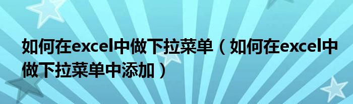 如何在excel中做下拉菜单(如何在excel中做下拉菜单中添加)