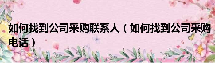 大家好,今天小六子来为大家解答以下的问题,关于如何找到公司采购联系人,如何找到公司采购电话这个很多人还不知道,现在让我们一起来看看吧!