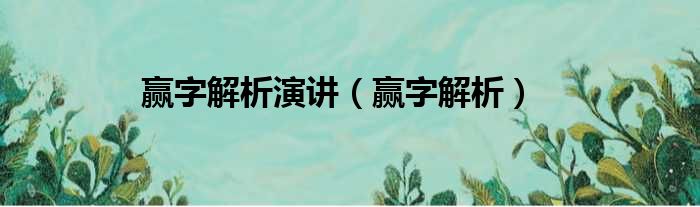 大家好,今天小六子来为大家解答以下的问题,关于赢字解析演讲,赢字解析这个很多人还不知道,现在让我们一起来看看吧!