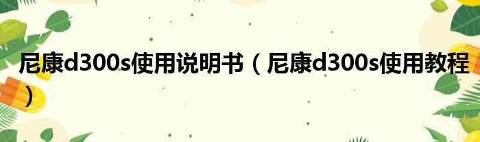 大家好,今天小六子来为大家解答以下的问题,关于尼康d300s使用说明书,尼康d300s使用教程这个很多人还不知道,现在让我们一起来看看吧!