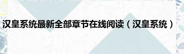 大家好,今天小六子来为大家解答以下的问题,关于汉皇系统最新全部章节在线阅读,汉皇系统这个很多人还不知道,现在让我们一起来看看吧!