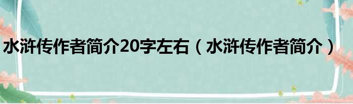 大家好,今天小六子来为大家解答以下的问题,关于水浒传作者简介20字左右,水浒传作者简介这个很多人还不知道,现在让我们一起来看看吧!