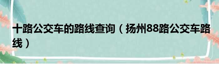 导读 大家好,今天小六子来为大家解答以下的问题,关于十路公交车的路线查询,扬州88路公交车路线这个很多人还不知道,现在让我们一起来看看吧!1