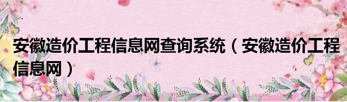 导读 大家好,今天小六子来为大家解答以下的问题,关于安徽造价工程信息网查询系统,安徽造价工程信息网这个很多人还不知道,现在让我们一起来看