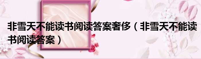 非雪天不能读书阅读答案奢侈(非雪天不能读书阅读答案)