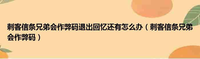 刺客信条兄弟会作弊码退出回忆还有怎么办(刺客信条兄弟会作弊码)