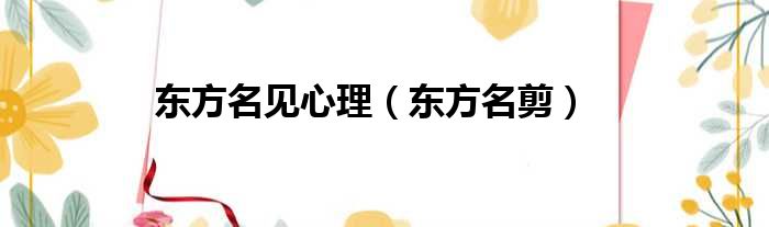 导读 大家好,今天小六子来为大家解答以下的问题,关于东方名见心理,东方名剪这个很多人还不知道,现在让我们一起来看看吧!1、东方名剪 北京五
