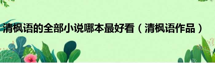 导读 大家好,今天小六子来为大家解答以下的问题,关于清枫语的全部小说哪本最好看,清枫语作品这个很多人还不知道,现在让我们一起来看看吧!1、