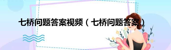 大家好,今天小六子来为大家解答以下的问题,关于七桥问题答案视频,七桥问题答案这个很多人还不知道,现在让我们一起来看看吧!