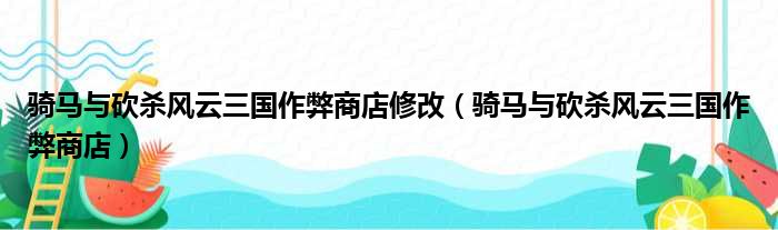 骑马与砍杀风云三国作弊商店修改(骑马与砍杀风云三国作弊商店)
