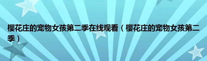 导读 大家好,今天小六子来为大家解答以下的问题,关于樱花庄的宠物女孩第二季在线观看,樱花庄的宠物女孩第二季这个很多人还不知道,现在让我们