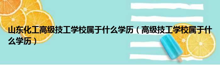 山东化工高级技工学校属于什么学历(高级技工学校属于什么学历)