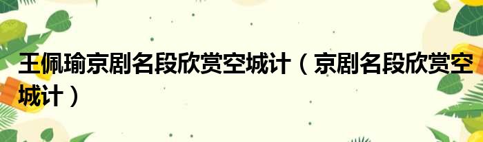 王佩瑜京剧名段欣赏空城计(京剧名段欣赏空城计)