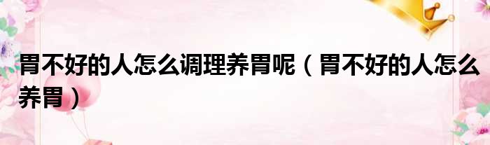 胃不好的人怎么调理养胃呢(胃不好的人怎么养胃)