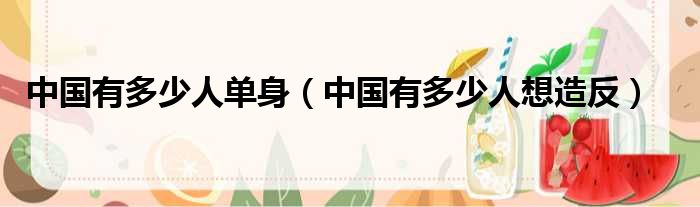 导读 大家好,今天小六子来为大家解答以下的问题,关于中国有多少人单身,中国有多少人想造反这个很多人还不知道,现在让我们一起来看看吧!1、中