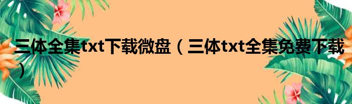导读 大家好,今天小六子来为大家解答以下的问题,关于三体全集txt下载微盘,三体txt全集免费下载这个很多人还不知道,现在让我们一起来看看吧!1