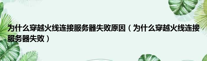 为什么穿越火线连接服务器失败原因(为什么穿越火线连接服务器失败)