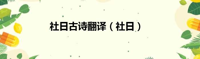 大家好,今天小六子来为大家解答以下的问题,关于社日古诗翻译,社日这个很多人还不知道,现在让我们一起来看看吧!