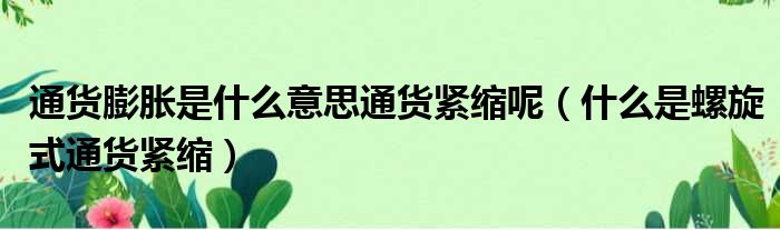 导读 大家好,今天小六子来为大家解答以下的问题,关于通货膨胀是什么意思通货紧缩呢,什么是螺旋式通货紧缩这个很多人还不知道,现在让我们一起