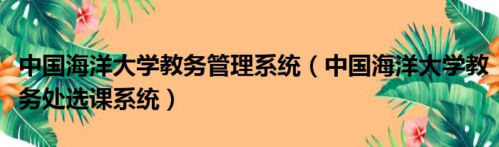 导读 大家好,今天小六子来为大家解答以下的问题,关于中国海洋大学教务管理系统,中国海洋大学教务处选课系统这个很多人还不知道,现在让我们一