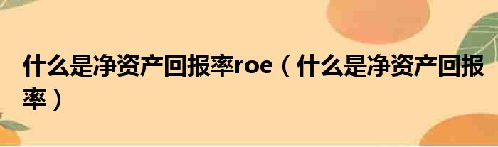 导读 大家好,今天小六子来为大家解答以下的问题,关于什么是净资产回报率roe,什么是净资产回报率这个很多人还不知道,现在让我们一起来看看吧!
