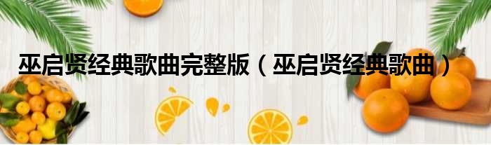 巫启贤经典歌曲完整版(巫启贤经典歌曲)