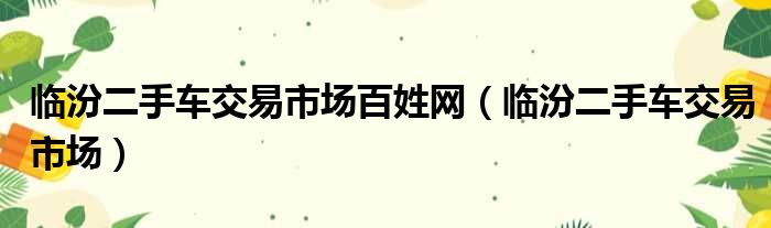 导读 大家好,今天小六子来为大家解答以下的问题,关于临汾二手车交易市场百姓网,临汾二手车交易市场这个很多人还不知道,现在让我们一起来看看