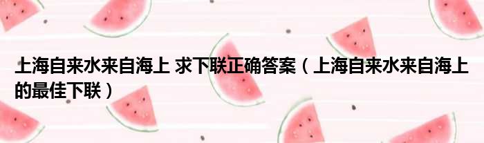 上海自来水来自海上 求下联正确答案(上海自来水来自海上的最佳下联)