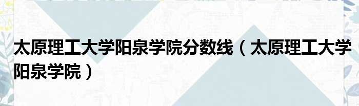 太原理工大学阳泉学院分数线(太原理工大学阳泉学院)