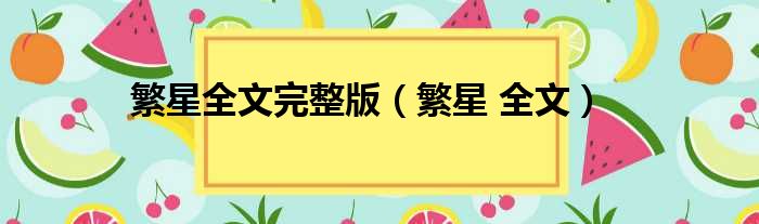 大家好,今天小六子来为大家解答以下的问题,关于繁星全文完整版,繁星 全文这个很多人还不知道,现在让我们一起来看看吧!