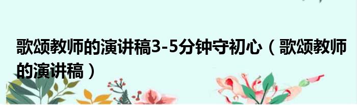 歌颂教师的演讲稿3-5分钟守初心(歌颂教师的演讲稿)