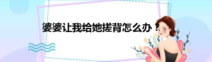 大家好,今天小六子来为大家解答以下的问题,关于婆婆让我给她搓背怎么办?这个很多人还不知道,现在让我们一起来看看吧!
