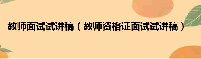 大家好,今天小六子来为大家解答以下的问题,关于教师面试试讲稿,教师资格证面试试讲稿这个很多人还不知道,现在让我们一起来看看吧!