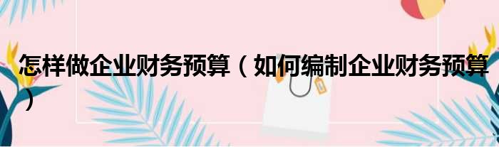 大家好,今天小六子来为大家解答以下的问题,关于怎样做企业财务预算,如何编制企业财务预算这个很多人还不知道,现在让我们一起来看看吧!