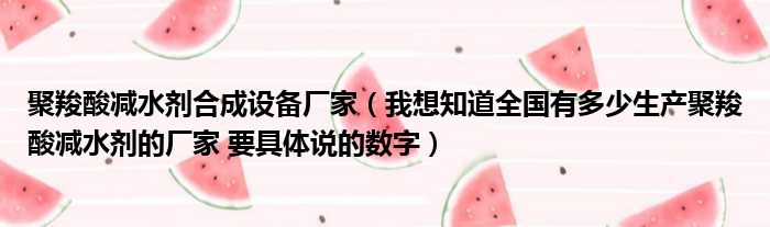 聚羧酸减水剂合成设备厂家(我想知道全国有多少生产聚羧酸减水剂的厂家 要具体说的数字)