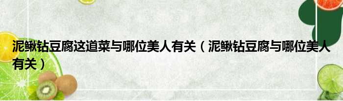 泥鳅钻豆腐这道菜与哪位美人有关(泥鳅钻豆腐与哪位美人有关)