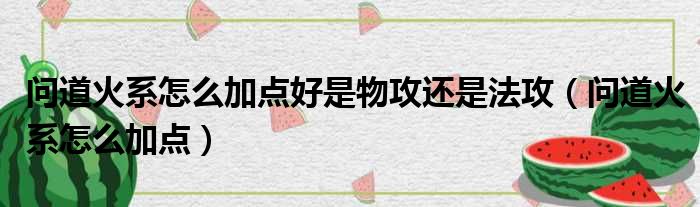 问道火系怎么加点好是物攻还是法攻(问道火系怎么加点)