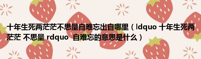 十年生死两茫茫不思量自难忘出自哪里(ldquo 十年生死两茫茫 不思量 rdquo 自难忘的意思是什么)