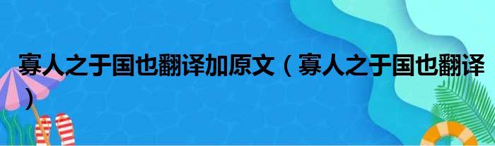 寡人之于国也翻译加原文(寡人之于国也翻译)