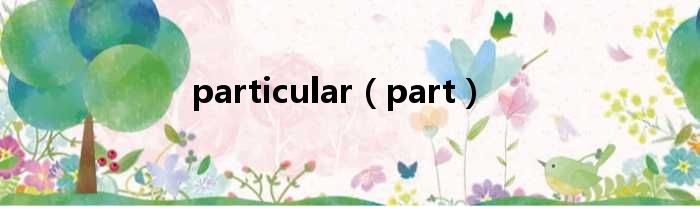 大家好,今天小六子来为大家解答以下的问题,关于particular,part这个很多人还不知道,现在让我们一起来看看吧!