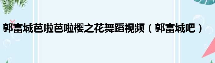 郭富城芭啦芭啦樱之花舞蹈视频(郭富城吧)