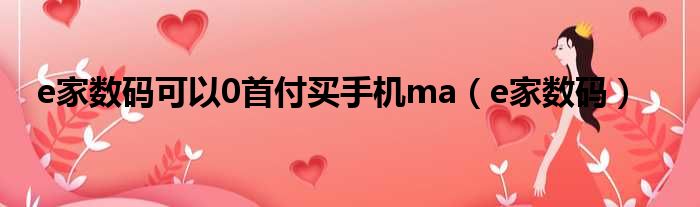 导读 大家好,今天小六子来为大家解答以下的问题,关于e家数码可以0首付买手机ma,e家数码这个很多人还不知道,现在让我们一起来看看吧!1、数码