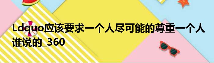 大家好,今天小六子来为大家解答以下的问题,关于Ldquo应该要求一个人尽可能的尊重一个人谁说的_360这个很多人还不知道,现在让我们一起来看看吧!