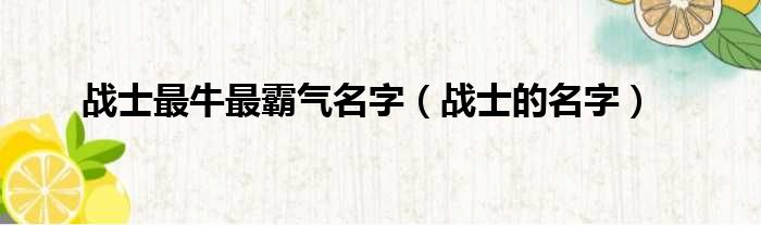大家好,今天小六子来为大家解答以下的问题,关于战士最牛最霸气名字,战士的名字这个很多人还不知道,现在让我们一起来看看吧!