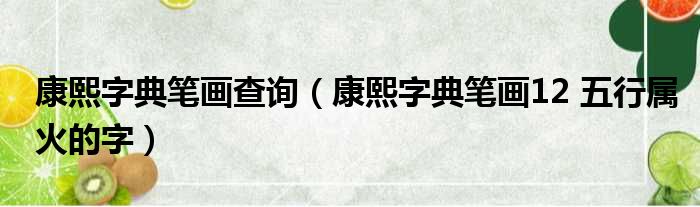 导读 大家好,今天小六子来为大家解答以下的问题,关于康熙字典笔画查询,康熙字典笔画12 五行属火的字这个很多人还不知道,现在让我们一起来看