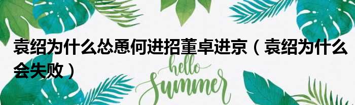 袁绍为什么怂恿何进招董卓进京(袁绍为什么会失败)